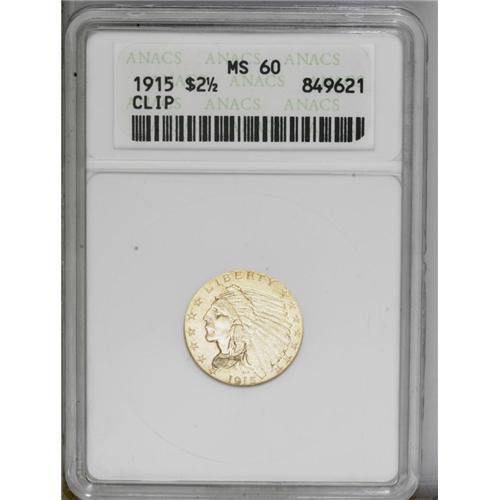 1915 $2 1/2 Indian Quarter Eagle--Clip--MS60 ANACS. A 1915[$2 1/2] Indian Quarter Eagle--Clip--MS60