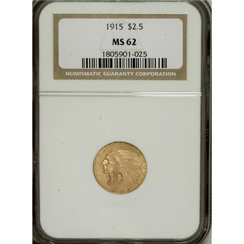 <B>1915 $2 1/2 MS62 NGC.</B></I> NGC Census: (2384/2161). PCGS Population (1072/1412). Mintage: 606,000. Numismedia Wsl. Price: $500. (#7948)<BR><BR><b>Shipping:</b> Coins & Currency (<a target="_blank" href="http://www.heritageauctions.com/common/shipping.php">view shipping information</a>)