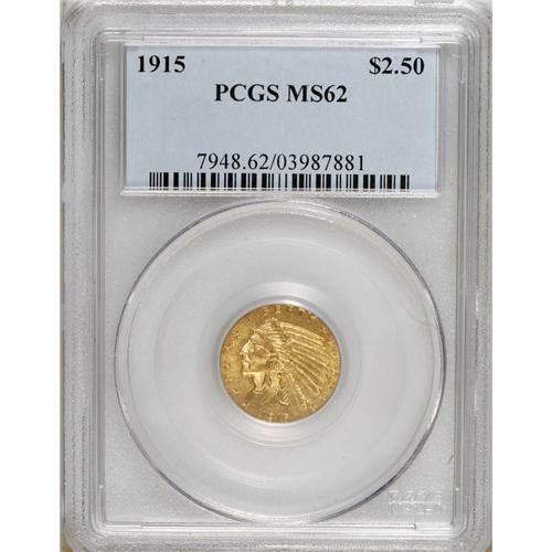 1915 $2 1/2 MS62 PCGS. PCGS Population (1072/1412)