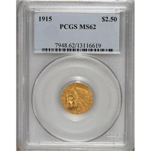 1915 $2 1/2 MS62 PCGS. PCGS Population (1086/1403)
