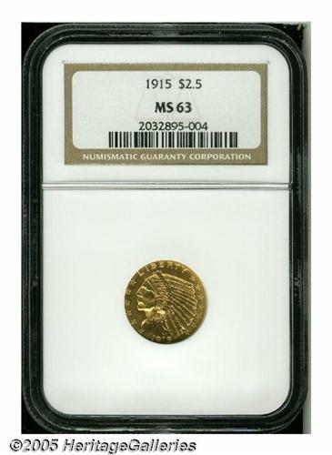<B>1915<$2 1/2> MS63 NGC.</B></I> Light golden-rose color with soft, frosty luster and excellent eye appeal.