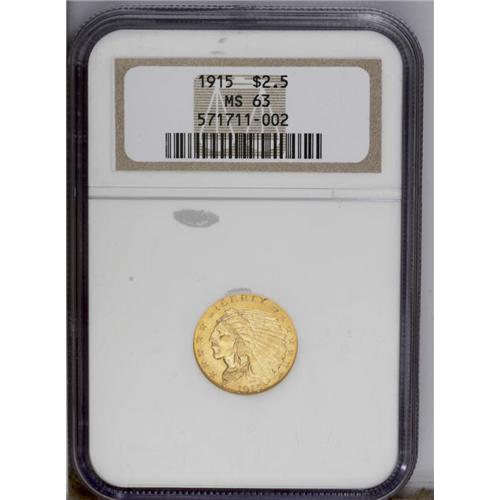 1915 $2 1/2 MS63 NGC. Sharply struck on the design ele No lot. [BR][BR]Important notice: