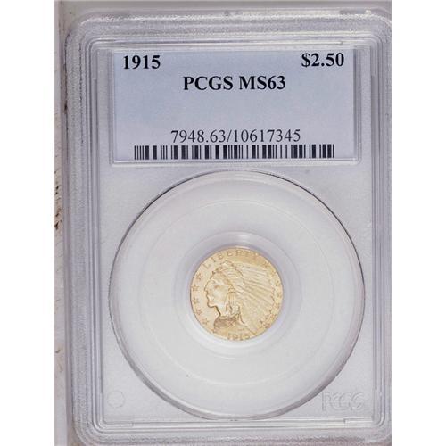 <B>1915<$2 1/2> MS63 PCGS.</B></I> A tad soft on the obverse stars but generally well detailed, with satin luster and lovely light toning. A small abrasion on the upper reverse is the only mentionable detraction on either side.