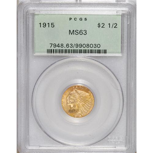 1915 $2 1/2 MS63 PCGS. Bright satiny luster and pleasi