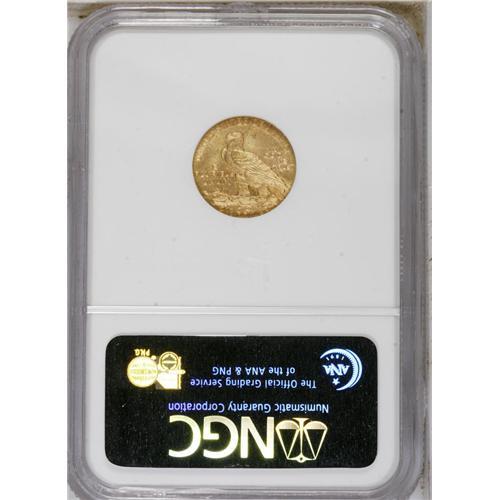 <B>1915 $2 1/2 MS64 NGC.</B></I> This wheat-gold piece is satiny and has solidly impressed devices. Delicate rose and violet accents appear on the obverse, as do tiny marks that account for the grade.<BR><BR><b>Shipping:</b> Coin/Currency (<a target="_blank" href="http://www.heritageauctions.com/common/shipping.php">view shipping information</a>)