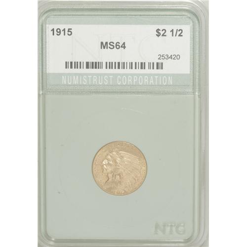 1915 $2 1/2 MS64 Numistrust (MS62). Bright throughout