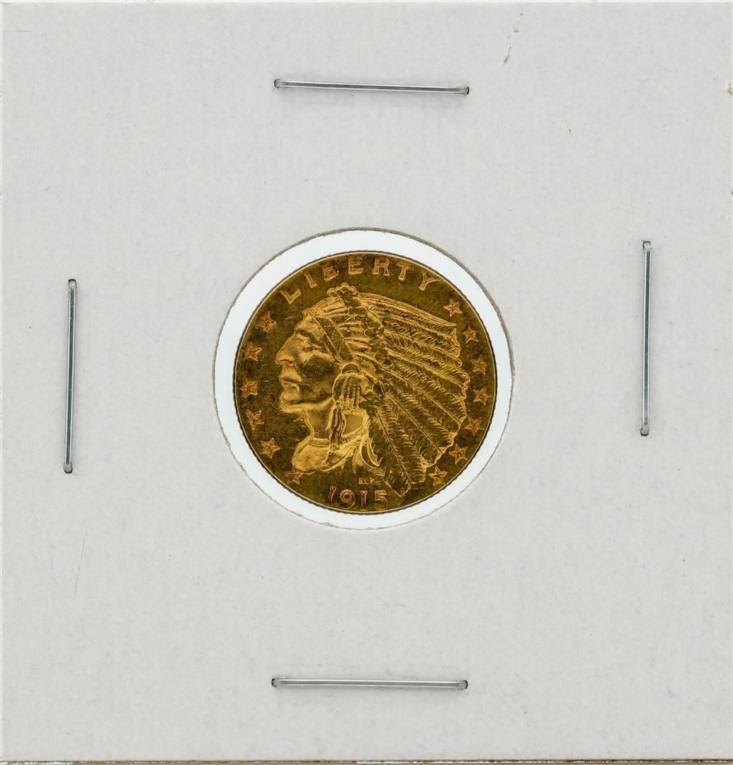 One 1915 $2.5 BU Indian Head Quarter Eagle Gold Coin.