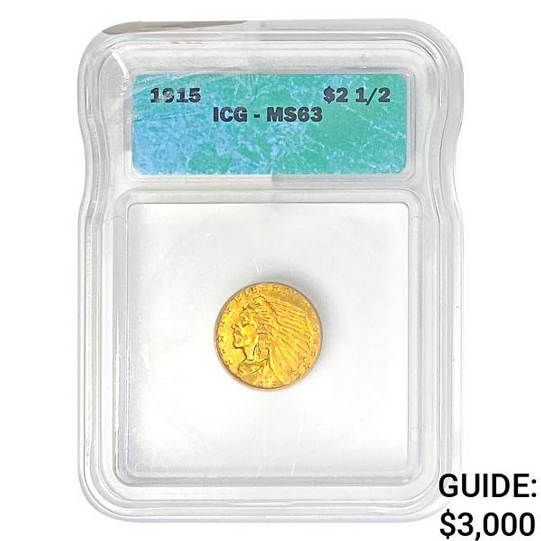 1915 $2.50 Gold Quarter Eagle ICG MS63