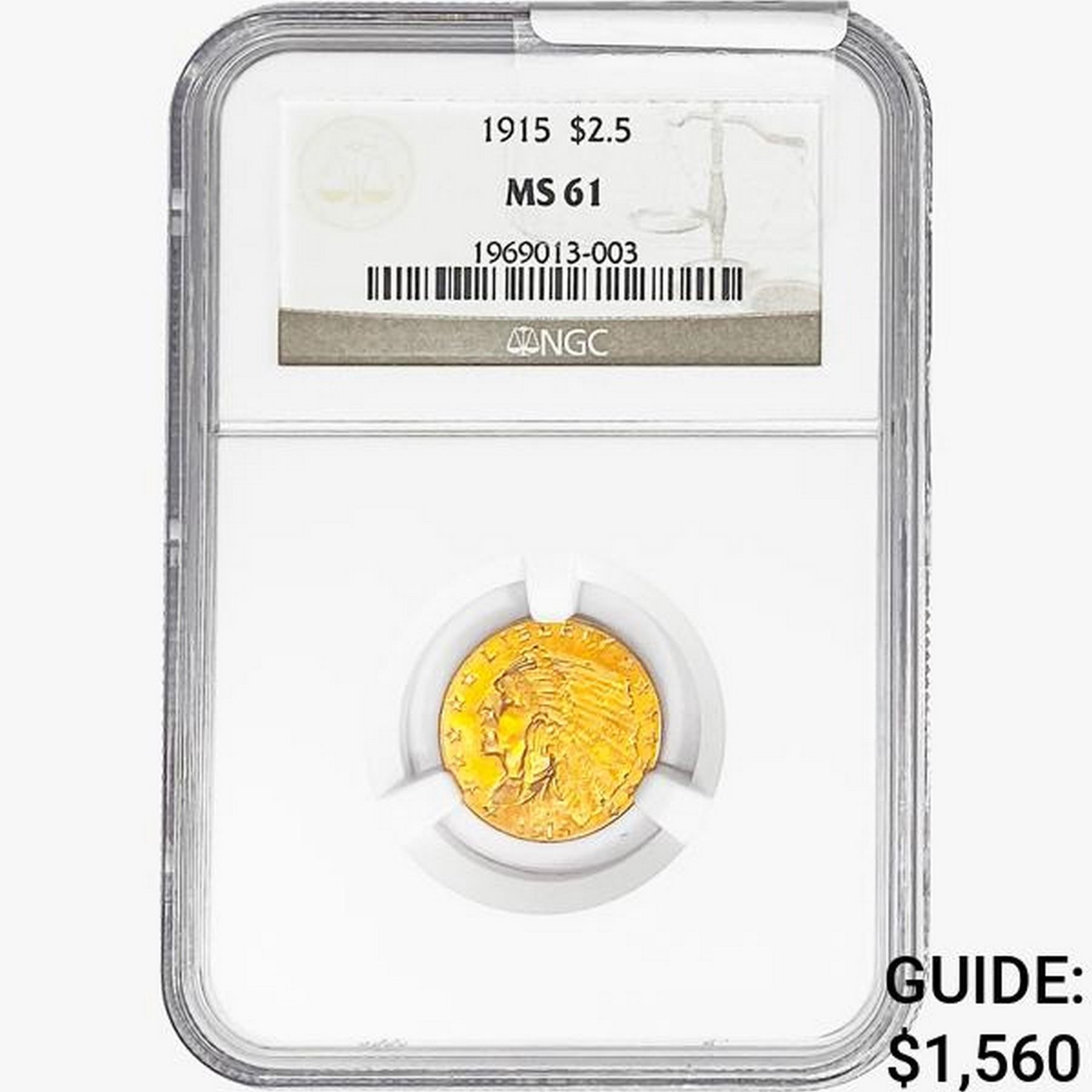 1915 $2.50 Gold Quarter Eagle NGC MS61