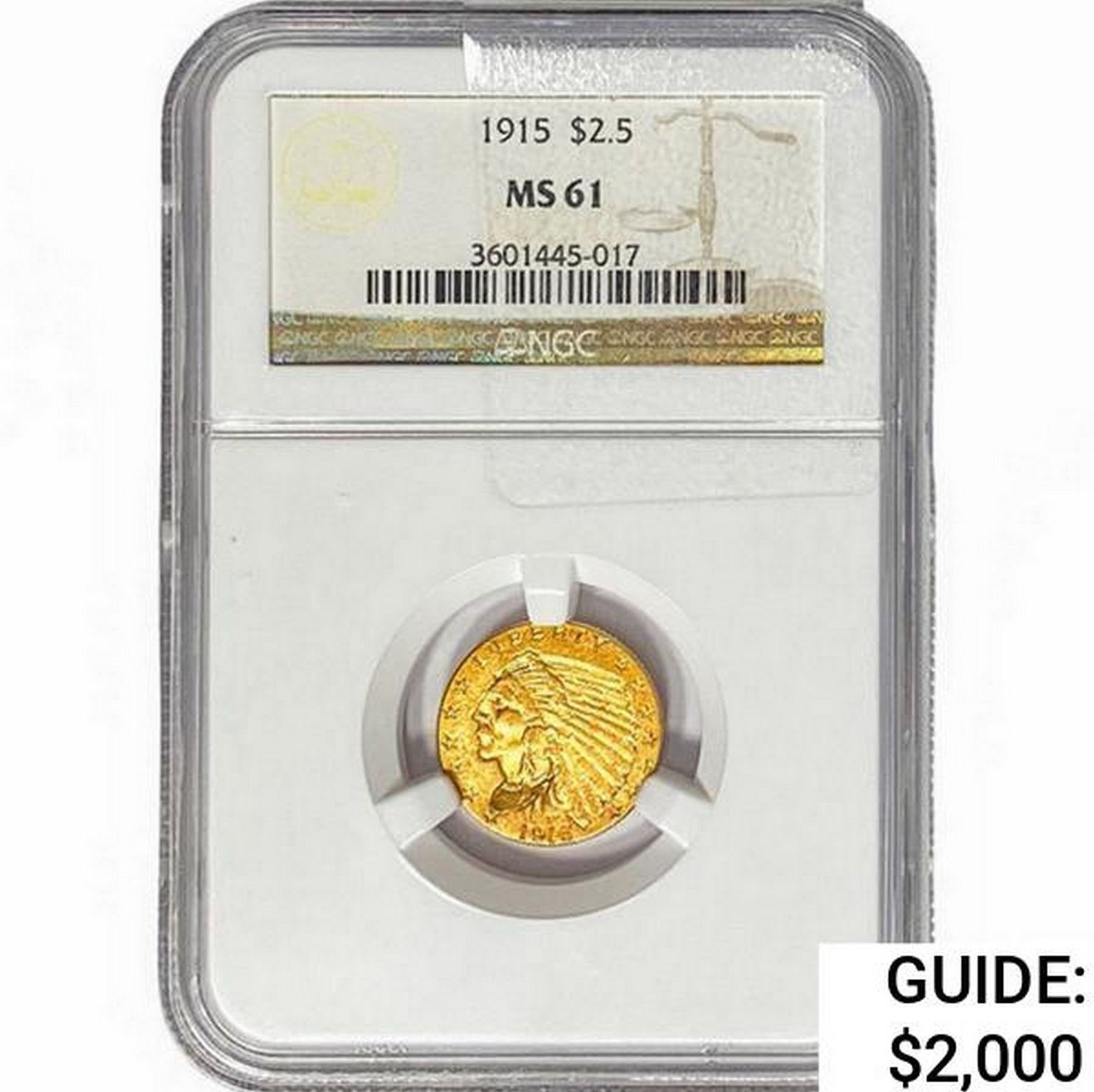 1915 $2.50 Gold Quarter Eagle NGC MS61