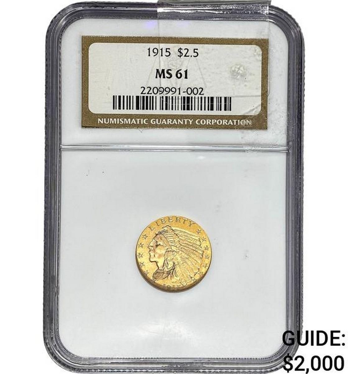1915 $2.50 Gold Quarter Eagle NGC MS61