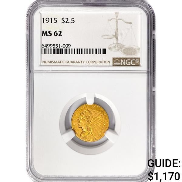 1915 $2.50 Gold Quarter Eagle NGC MS62