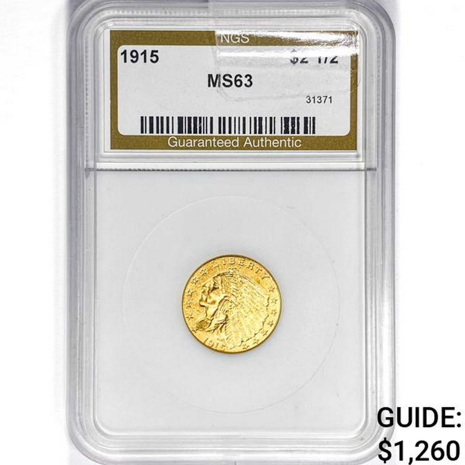 1915 $2.50 Gold Quarter Eagle NGS MS63