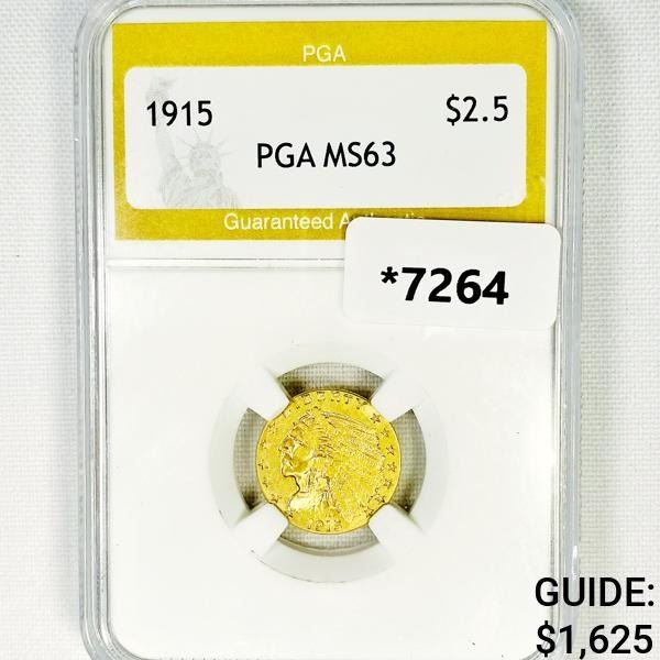1915 $2.50 Gold Quarter Eagle PGA-MS63