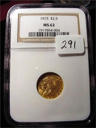 1915 $2.50 Indian Head Gold Coin NGC MS 62