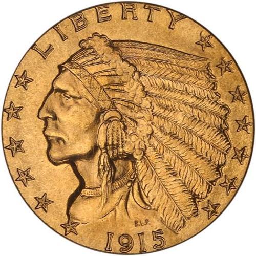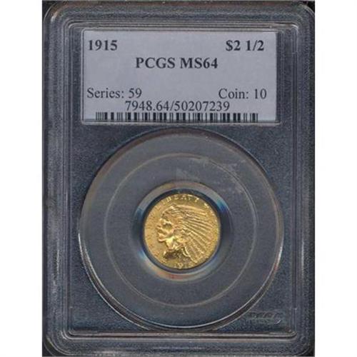 <b>1915 $2.50 Indian. PCGS graded MS64.</b> PCGS Pop: 488. An choice, frosty example, the surfaces bursting with vivid gold color and subtle patina spread over both sides. Well up on the competition in terms of its nice detail <b>(PCGS # 7948)</b> <i>