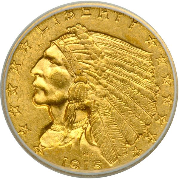 1915 $2.50 Indian. ICG graded MS-63. Lightly toned.