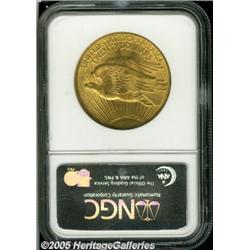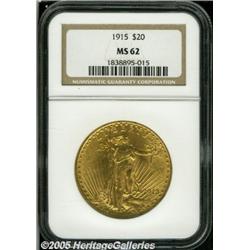 <B>1915 $20 MS62 NGC.</B></I> Lightly abraded surfaces with brilliant yellow gold luster.