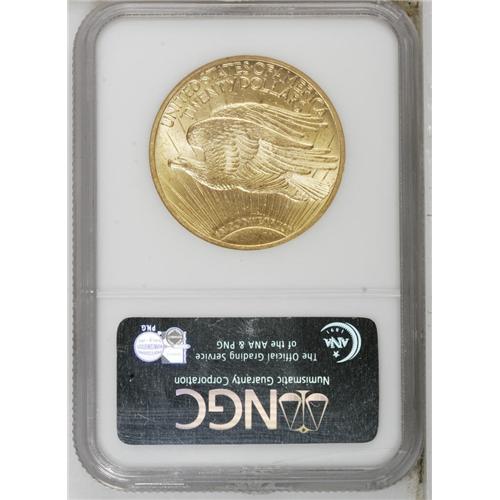 1915 $20 MS63 NGC. Sharply struck, with brassy-gold lu