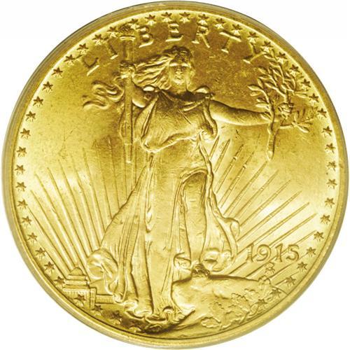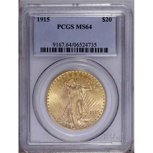 <B>1915<$20> MS64 PCGS.</B></I> Splendid reddish-golden color with tinges of olive at the margins. The satiny luster is particularly vibrant for this low production P-mint and there are only a few, minimally distracting surface marks. Legitimately scarce so nice.