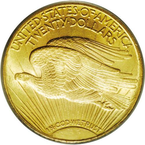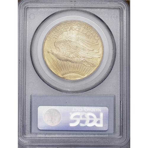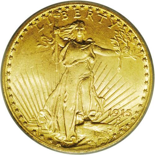 <B>1915<$20> MS64 PCGS.</B></I> The medium intensity orange-gold color is quite appealing, as are the lustrous, satiny textured surfaces. There are a seemingly typical number of abrasions, for the MS64 designation. A survivor of an original mintage of just 152,050 pieces, this coin is sharply struck in all but one or two isolated areas.