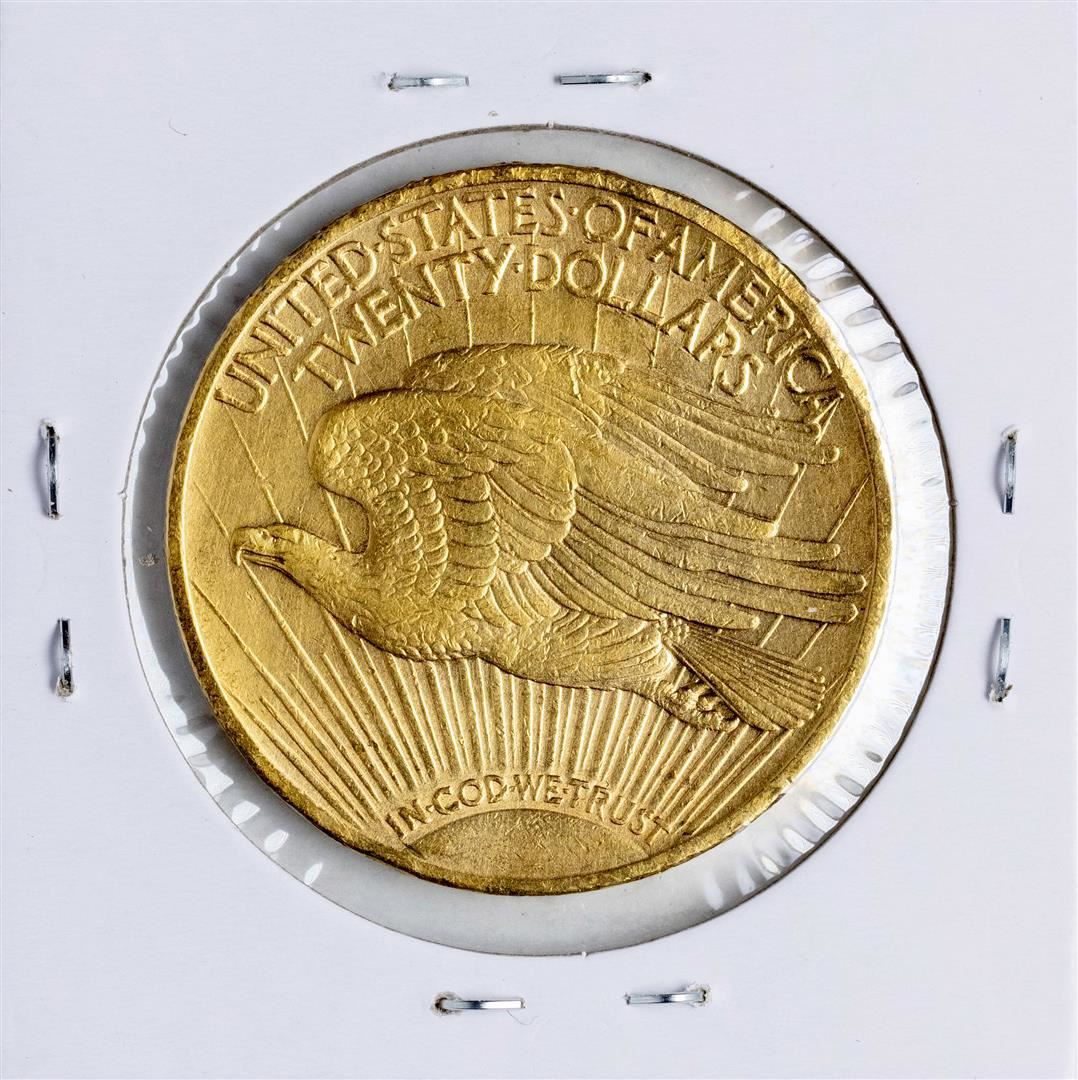 One 1915 $20 St. Gaudens Double Eagle Gold Coin.