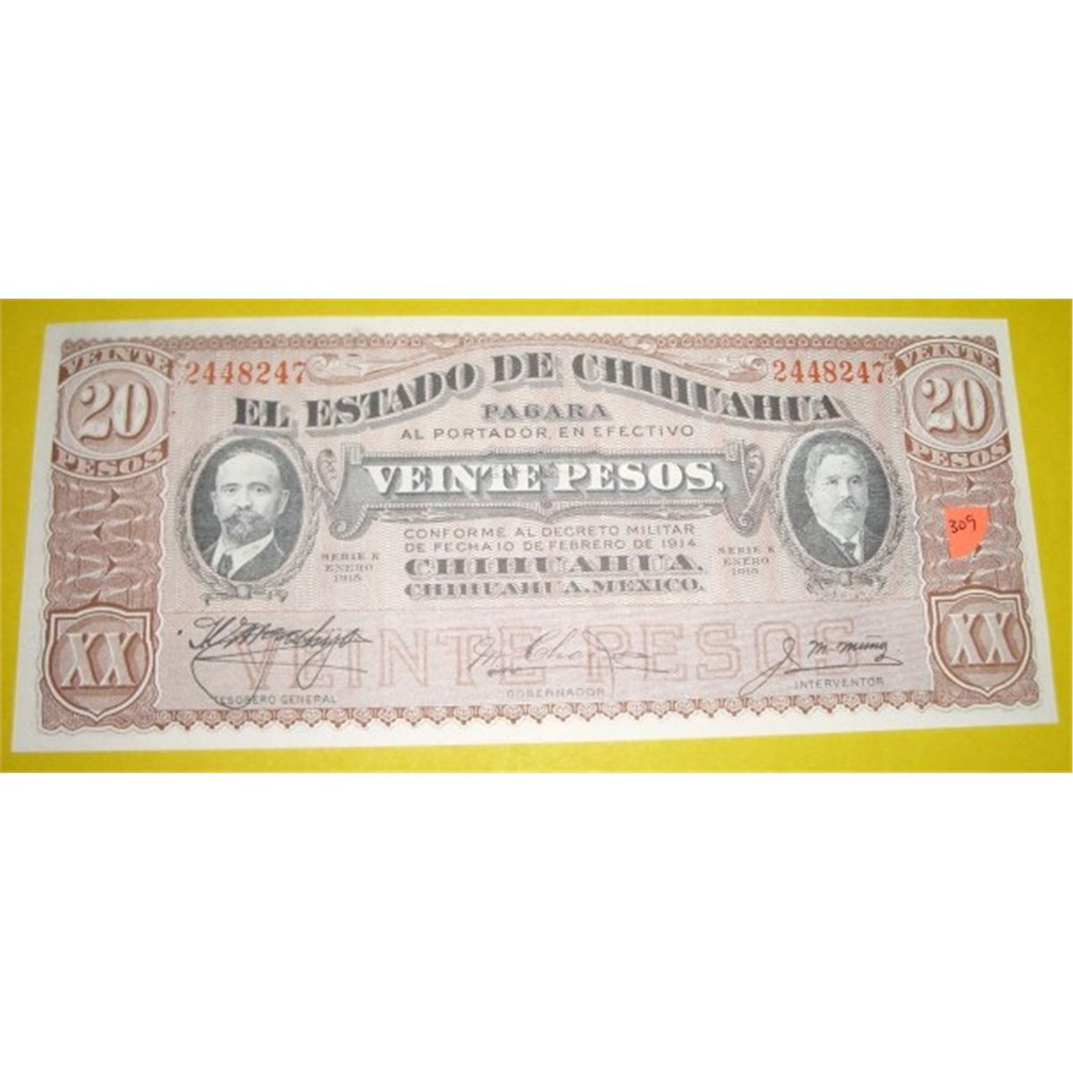 1915 20 Veinte Pesos Mexican Revolution note Series K *EXTREMELY RARE UNC GRADE* Serial # 2448247!! ***Coin & Currency Grades, Conditions & Values are not Safe Deposit Coins Responsibilty. Grades, Conditions & Values are determined by Consigner(s) & Buyers***