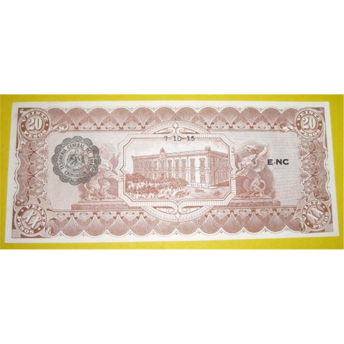 1915 20 Veinte Pesos Mexican Revolution note Series K *EXTREMELY RARE UNC GRADE* Serial # 2448254!! ***Coin & Currency Grades, Conditions & Values are not Safe Deposit Coins Responsibilty. Grades, Conditions & Values are determined by Consigner(s) & Buyers***