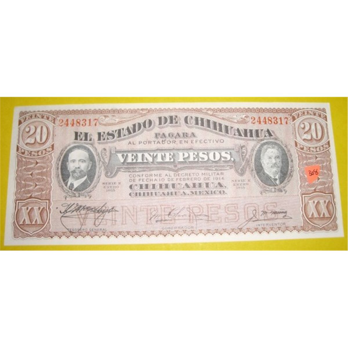 1915 20 Veinte Pesos Mexican Revolution note Series K *EXTREMELY RARE UNC GRADE* Serial # 2448317!! ***Coin & Currency Grades, Conditions & Values are not Safe Deposit Coins Responsibilty. Grades, Conditions & Values are determined by Consigner(s) & Buyers***