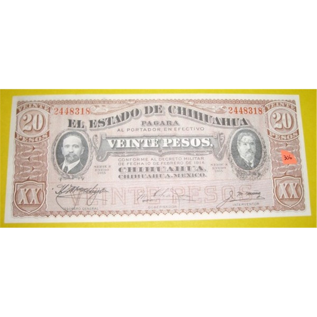 1915 20 Veinte Pesos Mexican Revolution note Series K *EXTREMELY RARE UNC GRADE* Serial # 2448318!! ***Coin & Currency Grades, Conditions & Values are not Safe Deposit Coins Responsibilty. Grades, Conditions & Values are determined by Consigner(s) & Buyers***