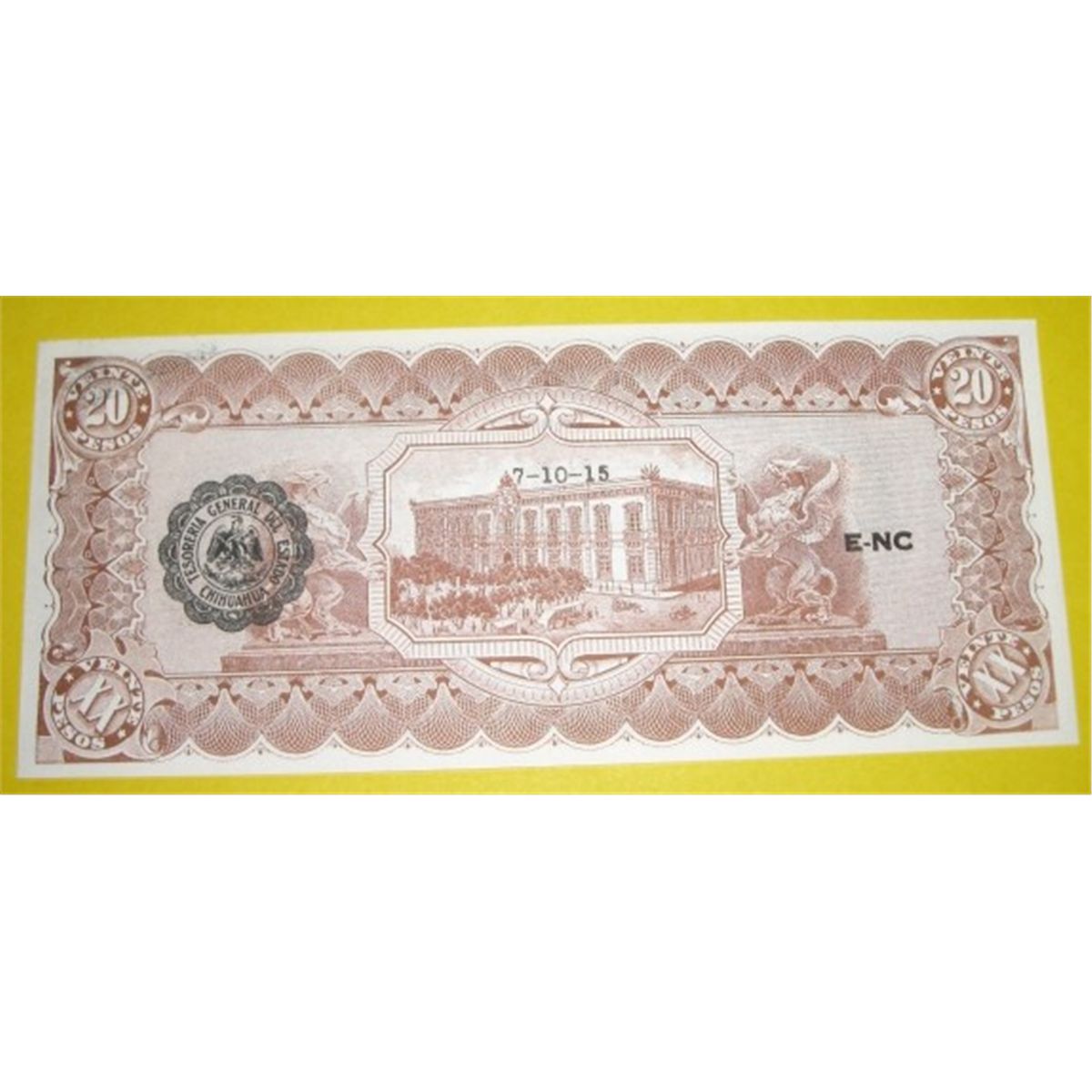 1915 20 Veinte Pesos Mexican Revolution note Series K *EXTREMELY RARE UNC GRADE* Serial # 2448341!! ***Coin & Currency Grades, Conditions & Values are not Safe Deposit Coins Responsibilty. Grades, Conditions & Values are determined by Consigner(s) & Buyers***