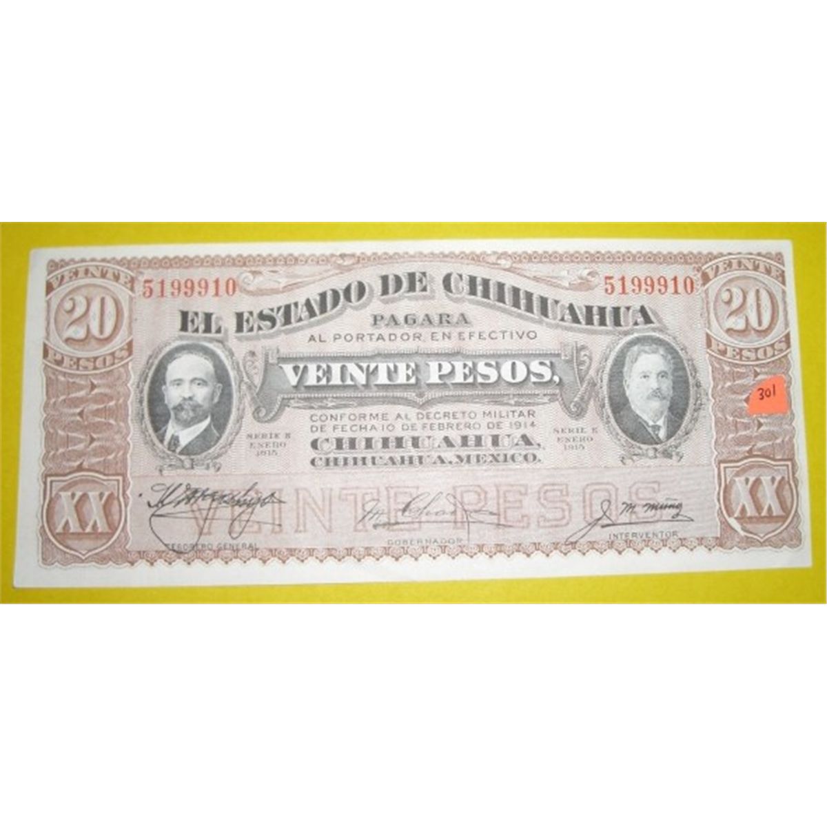 1915 20 Veinte Pesos Mexican Revolution note Series K *EXTREMELY RARE UNC GRADE* Serial # 5199910!! ***Coin & Currency Grades, Conditions & Values are not Safe Deposit Coins Responsibilty. Grades, Conditions & Values are determined by Consigner(s) & Buyers***