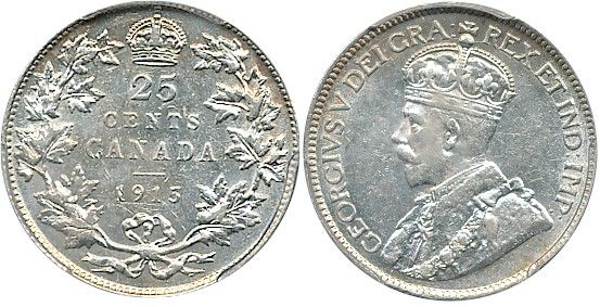 1915 25¢ PCGS AU50. Brilliant and lustrous. Scarce date.