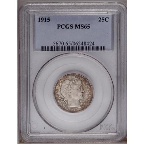 <B>1915<25C> MS65 PCGS.</B></I> Medium gray-green and deep russet toning covers both sides of this Gem. The underlying luster is somewhat subdued by the weight of the toning, but it is still easy to see that this is an above-average example of the date and type.