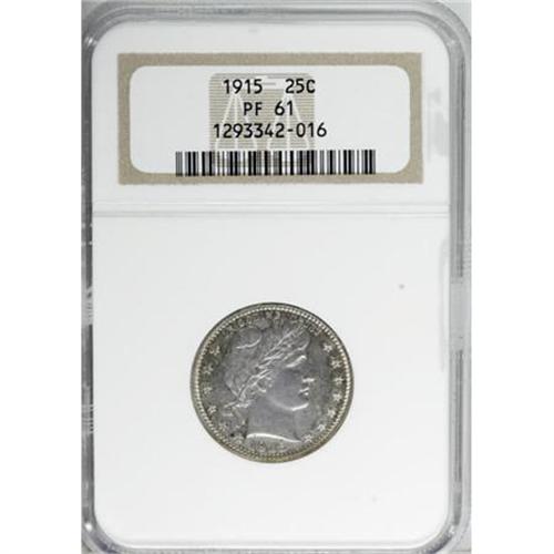 <B>1915 25C PR61 NGC.</B></I> NGC Census: (4/137). PCGS Population (3/119). Mintage: 450. Numismedia Wsl. Price for NGC/PCGS coin in PR61: $405. (#5701)<BR><BR><B>Coin Engraver:</B> Charles E. Barber<BR><BR><b>Shipping:</b> Coins & Currency (<a target="_blank" href="http://www.heritageauctions.com/common/shipping.php">view shipping information</a>\)