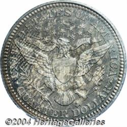 <table><tr><td><table><tr><td>1915 25C PR65 PCGS. The 1915 was the final year in the Barber quarter series and it also has the lowest mintage of the type with just 450 pieces struck. This particular coin is an interesting study in contrasts. The obverse is covered in multiple bands of deep, iridescent toning with strong underlying mirrored reflectivity. The reverse, on the other hand, has a subdued, original deep gray patina with little of the original flash showing but the surface's technical preservation fully intact. Population: 12 in 65, 14 finer (2/04). <BR><BR><B>Important notice:</B> Heritage usually auctions material at the rate of 200-250 lots per hour. On some occasions eBay Live bid software or the Internet may not be able to keep up with the pace of the auction. We recommend placing a realistic absentee bid now as insurance to avoid disappointment. Occasionally the auctioneer may eliminate or reject an eBay Live bid, and the auctioneer may also reopen a lot after the close of the eBay live bidding (usually because we missed an audience bid), and may reject your bid even if it shows you as the winning bidder. By bidding via eBay Live, you agree that Heritage may award the lot to another bidder at its sole discretion under the circumstances described above or any other reasonable circumstances. Since eBay bids are not shown to us until we open the lot on the floor, we treat those bids just like floor bids. In most cases the floor responds before the eBay bid is presented to us, due to Internet lag time, so for consistency we have made it a policy that floor bids are always considered first over tie eBay live bids. Also please note that all Heritage lots purchased through eBay Live carry a 20% Buyer's Premium. Please make sure you read the Terms and Conditions before you bid. <BR><BR><B>IMPORTANT ANNOUNCEMENT ABOUT RESERVES:</B> Heritage now divulges all reserves on its web site 7 days before every auction. If you want to know whether the reserve on this lot has been met, and if not, what the reserve amount is, please visit this lot page on the HeritageCoin.com web site, or email: bid@HeritageGalleries.com </span></font></td></tr></table></td></tr></table>