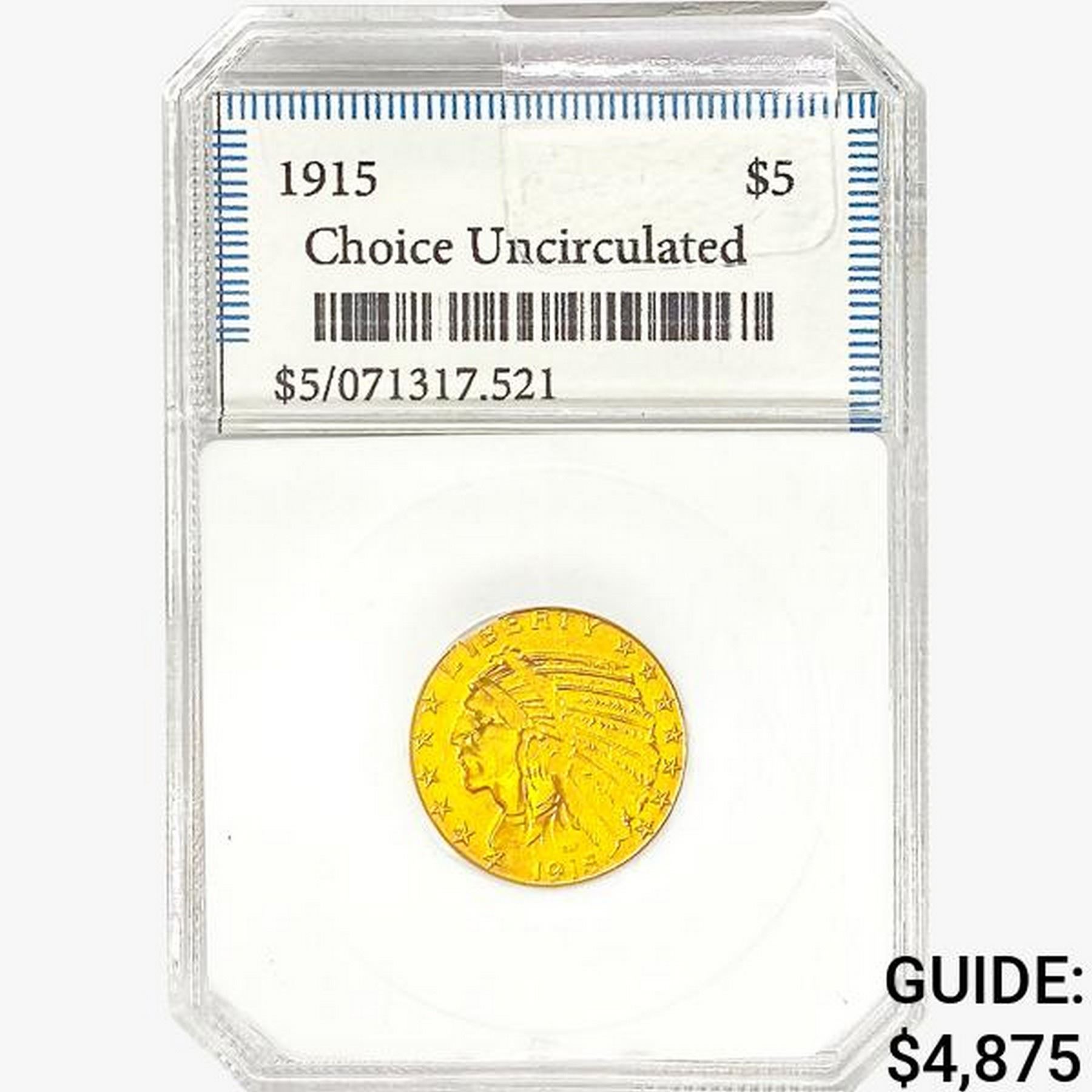 1915 $5 Gold Half Eagle Blank Choice UNC