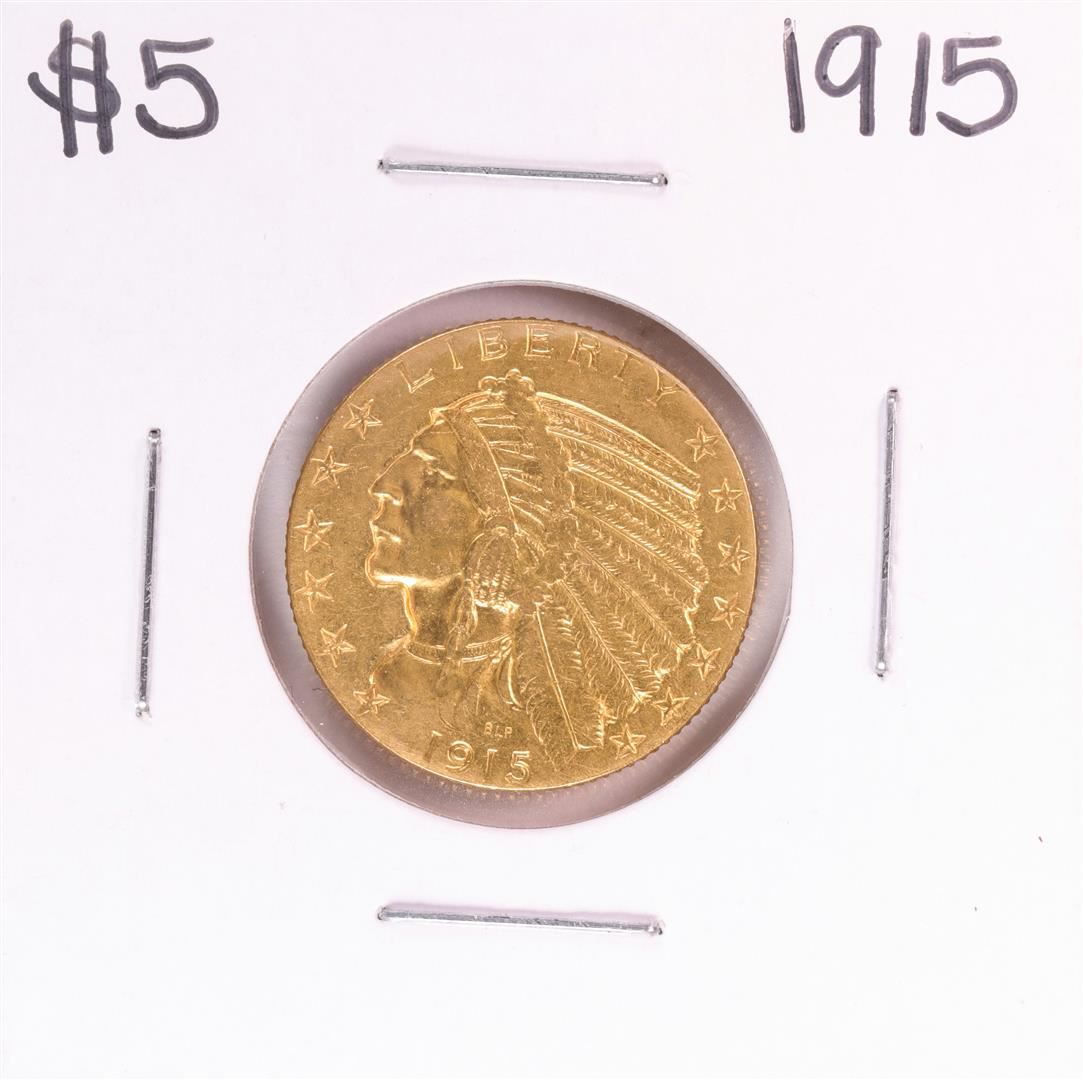 One 1915 $5 Indian Head Half Eagle Gold Coin.