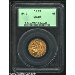 1915 $5 MS63 PCGS. A boldly struck Half Eagle with deep honey-gold color in the fields. The obverse.