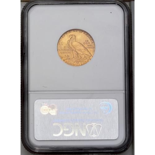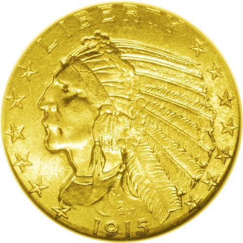<B>1915<$5> MS64 NGC.</B></I> An especially Choice example with characteristically bold definition and a smooth, frosty portrait. Even close examination fails to reveal any singularly mentionable abrasions. Five dollar Indians in better grades are still well below their historic highs and appealing, conservatively graded pieces such as this appear to represent excellent value when compared to other 20th century gold type coins.