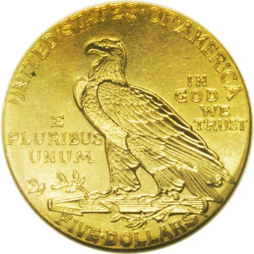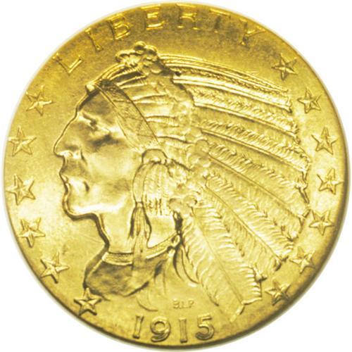 <B>1915<$5> MS64 NGC.</B></I> Dazzling brilliance and an exceptionally bold strike as well. An uncommonly flashy example of this conditionally scarce and popular type. A small blemish below the Indian's chin, and a couple of faint pinscratches on the reverse fields limit the grade. This piece represents a wonderful opportunity for the advanced type collector.