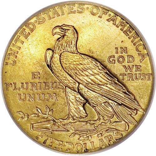 <B>1915 $5 MS65 PCGS.</B></I> This is an amazing Gem with extraordinary yellow-gold luster and brilliant mint frost on both sides. The surfaces have light yellow-gold color with splashes of vivid lemon yellow toning. It is a fully struck and exhibits only the usual trivial surface marks that are consistent with the grade. Although this date ranks 17th out of 24 issues in Gem condition (per Jeff Garrett and Ron Guth in their <I>Gold Encyclopedia</B></I>), it is important to recognize that not a single piece has received a higher grade by PCGS. Population: 33 in 65, 0 finer (4/07).<BR><BR><b>Shipping:</b> Coins & Currency (<a target="_blank" href="http://www.heritageauctions.com/common/shipping.php">view shipping information</a>)