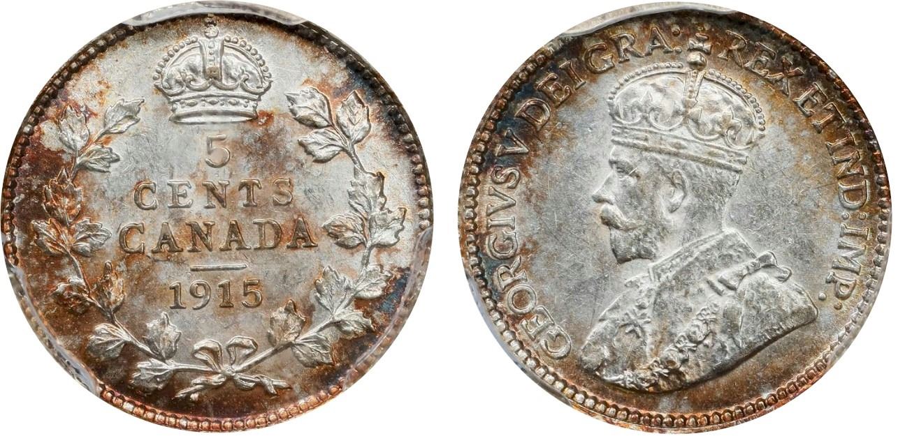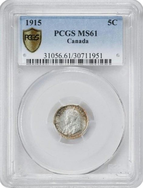 1915 5¢ PCGS Mint State-61 Lustrous with light russet tone. A better date.