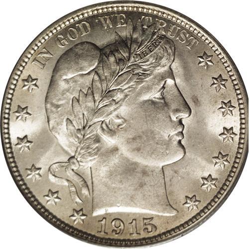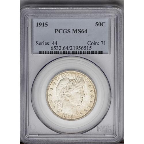 <B>1915<50C> MS64 PCGS.</B></I> A lustrous and suitably struck example with a nearly pristine reverse and an attractive obverse. A faint area of discoloration affects the AL in HALF. The 1915 is the last entry in a three-year run of low mintage Philadelphia issues. Just 138,000 pieces were struck, far fewer than the famous 1916-D dime. The final year of the type, although Barber dimes and quarters were struck in 1916. Population: 24 in 64, 16 finer (4/06).