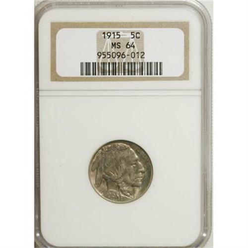<B>1915 5C MS64 NGC.</B></I> NGC Census: (396/352). PCGS Population (557/638). Mintage: 20,987,270. Numismedia Wsl. Price for NGC/PCGS coin in MS64: $128. (#3927)<BR><BR><B>Coin Engraver:</B> James E. Fraser<BR><BR><b>Shipping:</b> Coins & Currency (<a target="_blank" href="http://www.heritageauctions.com/common/shipping.php">view shipping information</a>\)