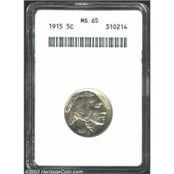 <TABLE cellSpacing=0 cellPadding=0 width="100%" bgColor=#000000 border=0><TBODY><TR><TD width="100%"><TABLE cellSpacing=1 cellPadding=3 width="100%" border=0><TBODY><TR><TD width="100%" bgColor=#79735c><FONT face=arial color=#ffffff size=3><B>Description</B> </FONT></TD></TR><TR><TD width="100%" bgColor=#ffffff><FONT face=arial size=2><B>1915 5C MS65 ANACS.</B></I> Well struck for the type with good luster and attractive rose-gold surfaces. Other than a few wispy slide marks on the bison's shoulder, the satiny surfaces are virtually mark-free. </FONT></TD></TR></TBODY></TABLE></TD></TR></TBODY></TABLE><BR><A name=PricesRealized></A><TABLE cellSpacing=0 cellPadding=0 width="100%" bgColor=#000000 border=0><TBODY><TR><TD width="100%"><TABLE cellSpacing=1 cellPadding=3 width="100%" border=0><TBODY><TR><TD width="100%" bgColor=#79735c><A name=PR><FONT face=arial color=#ffffff size=3><B>Previous Prices from Heritage Auctions</B> </FONT></A></TD></TR><TR><TD bgColor=#f6f6ed><TABLE cellSpacing=0 cellPadding=0 width="100%" border=1><TBODY><TR><TD align=middle width="33%"><B>Date</B></TD><TD align=middle width="33%"><B>Service</B></TD><TD align=middle width="33%"><B>Price</B></TD></TR><TR bgColor=whitesmoke><TD width="33%"><B>03/04/1994</B></TD><TD width="33%">PCGS</TD><TD width="33%">$286.00</TD></TR><TR bgColor=whitesmoke><TD width="33%"><B>11/19/1999</B></TD><TD width="33%">PCGS</TD><TD width="33%">$201.25</TD></TR><TR bgColor=whitesmoke><TD width="33%"><B>02/06/1995</B></TD><TD width="33%">PCGS</TD><TD width="33%">$286.00</TD></TR><TR bgColor=whitesmoke><TD width="33%"><B>01/04/1996</B></TD><TD width="33%">PCGS</TD><TD width="33%">$176.00</TD></TR><TR bgColor=whitesmoke><TD width="33%"><B>03/16/1996</B></TD><TD width="33%">PCGS</TD><TD width="33%">$209.00</TD></TR><TR bgColor=whitesmoke><TD width="33%"><B>03/22/1997</B></TD><TD width="33%">PCGS</TD><TD width="33%">$184.00</TD></TR><TR bgColor=whitesmoke><TD width="33%"><B>10/07/1995</B></TD><TD width="33%">NGC</TD><TD width="33%">$302.50</TD></TR><TR bgColor=whitesmoke><TD width="33%"><B>02/22/1997</B></TD><TD width="33%">PCGS</TD><TD width="33%">$165.00</TD></TR><TR bgColor=whitesmoke><TD width="33%"><B>03/23/2003</B></TD><TD width="33%">PCGS</TD><TD width="33%">$299.00</TD></TR><TR bgColor=whitesmoke><TD width="33%"><B>07/30/2002</B></TD><TD width="33%">PCGS</TD><TD width="33%">$247.25</TD></TR><TR bgColor=whitesmoke><TD width="33%"><B>06/12/2001</B></TD><TD width="33%">PCGS</TD><TD width="33%">$196.00</TD></TR><TR bgColor=whitesmoke><TD width="33%"><B>04/24/2001</B></TD><TD width="33%">PCGS</TD><TD width="33%">$220.00</TD></TR><TR bgColor=whitesmoke><TD width="33%"><B>04/05/2001</B></TD><TD width="33%">PCGS</TD><TD width="33%">$201.25</TD></TR><TR bgColor=whitesmoke><TD width="33%"><B>01/23/2001</B></TD><TD width="33%">PCGS</TD><TD width="33%">$230.00</TD></TR><TR bgColor=whitesmoke><TD width="33%"><B>12/26/2000</B></TD><TD width="33%">PCGS</TD><TD width="33%">$210.00</TD></TR><TR bgColor=whitesmoke><TD width="33%"><B>11/06/2001</B></TD><TD width="33%">NGC</TD><TD width="33%">$210.00</TD></TR><TR bgColor=whitesmoke><TD width="33%"><B>04/05/2001</B></TD><TD width="33%">NGC</TD><TD width="33%">$207.00</TD></TR><TR bgColor=whitesmoke><TD width="33%"><B>06/03/2003</B></TD><TD width="33%">NGC</TD><TD width="33%">$247.25</TD></TR></TBODY></TABLE></TD></TR><TR><TD bgColor=#ffffff><FONT face=arial size=1 ?>PLEASE NOTE: All prices realized reflect the final hammer price PLUS the buyer's premium in auctions that charge a buyer's premium. Each item has a notation at the top of the listing indicating whether that lot included a buyer's premium. Example: A item that sells with a final hammer price of $100 and a 20% buyer's premium will display with a price realized of $120. All information listed is intended to be as accurate as possible, but errors are possible. Please use this guide carefully and inform us of any inaccuracies. </FONT></TD></TR></TBODY></TABLE></TD></TR></TBODY></TABLE><BR><TABLE cellSpacing=0 cellPadding=0 width="100%" bgColor=#000000 border=0><TBODY><TR><TD width="100%"><TABLE cellSpacing=1 cellPadding=3 width="100%" border=0><TBODY><TR><TD width="100%" bgColor=#79735c colSpan=6><FONT face=arial color=#ffffff size=3><B>Price Guide*</B> </FONT></TD></TR><TR bgColor=#f6f6ed><TD align=middle><B>Grade</B> </TD><TD align=middle><B>Coin World<BR>(Trends)</B> </TD><TD align=middle><B>Numismedia<BR>Retail</B> </TD><TD align=middle><B>Numismedia<BR>Wholesale</B> </TD><TD align=middle><B>Coin<BR>Universe</B> </TD><TD align=middle><B>Heritage<BR>Value Index</B> </TD></TR><TR bgColor=#ffffff><TD align=middle>64</TD><TD align=right>$125.00</TD><TD align=right>$156.00</TD><TD align=right>$125.00</TD><TD align=right>$130.00</TD><TD align=right>$93.50</TD></TR><TR style="FONT-WEIGHT: bold" bgColor=#cccfdd><TD align=middle>65</TD><TD align=right>$325.00</TD><TD align=right>$285.00</TD><TD align=right>$228.00</TD><TD align=right>$325.00</TD><TD align=right>$217.00</TD></TR><TR bgColor=#ffffff><TD align=middle>66</TD><TD align=right>$1,000.00</TD><TD align=right>$625.00</TD><TD align=right>$481.00</TD><TD align=right>$600.00</TD><TD align=right>$497.00</TD></TR><TR bgColor=#ffffff><TD colSpan=6><FONT size=1>*All information listed is intended to be as accurate as possible, but errors are possible. No item may be returned or refused based on this information which is provided as a service to our customers. You should contact each pricing source directly to determine the accuracy of this information. </FONT></TD></TR></TBODY></TABLE></TD></TR></TBODY></TABLE><BR><TABLE cellSpacing=0 cellPadding=0 width="100%" bgColor=#000000 border=0><TBODY><TR><TD width="100%"><TABLE cellSpacing=1 cellPadding=3 width="100%" border=0><TBODY><TR><TD width="100%" bgColor=#79735c><FONT face=arial color=#ffffff size=3><B>Population Guide</B> </FONT></TD></TR><TR bgColor=#ffffff><TD align=middle><!-- Begin Output of Population Grid--><TABLE cellSpacing=0 cellPadding=0 width="