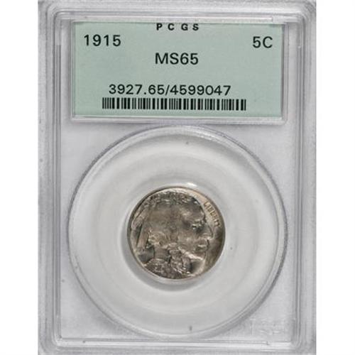 <B>1915 5C MS65 PCGS.</B></I> PCGS Population (392/250). NGC Census: (272/83). Mintage: 20,987,270. Numismedia Wsl. Price for NGC/PCGS coin in MS65: $265. (#3927)<BR><BR><B>Coin Engraver:</B> James E. Fraser<BR><BR><b>Shipping:</b> Coins & Currency (<a target="_blank" href="http://www.heritageauctions.com/common/shipping.php">view shipping information</a>)