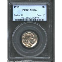 1915 5C MS66 PCGS. A near-twin to the preceding, with equally strong detail and similar blushes of g