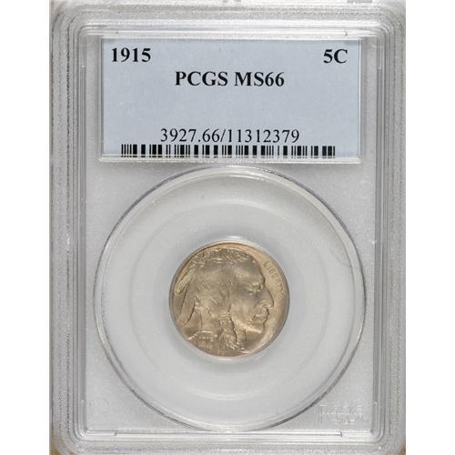 <B>1915 5C MS66 PCGS.</B></I> PCGS Population (216/35). NGC Census: (77/6). Mintage: 20,987,270. Numismedia Wsl. Price: $450. (#3927)<BR><BR><b>Shipping:</b> Coins & Currency (<a target="_blank" href="http://www.heritageauctions.com/common/shipping.php">view shipping information</a>)