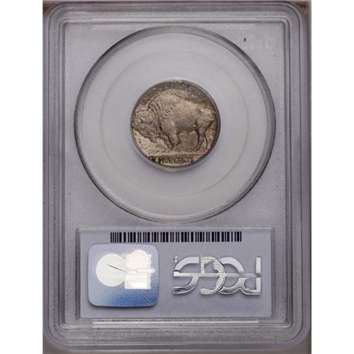 <B>1915<5C> PR64 PCGS.</B></I> A satiny, razor-sharp near-Gem with dappled lime, rose, and stone-gray tones. A few pinpoint carbon flecks decide the grade. The matte proofs must not have been popular with contemporary collectors, since the mintage of 1,050 pieces was less than any proof issue of Liberty nickels, not counting the illegitimate 1913.